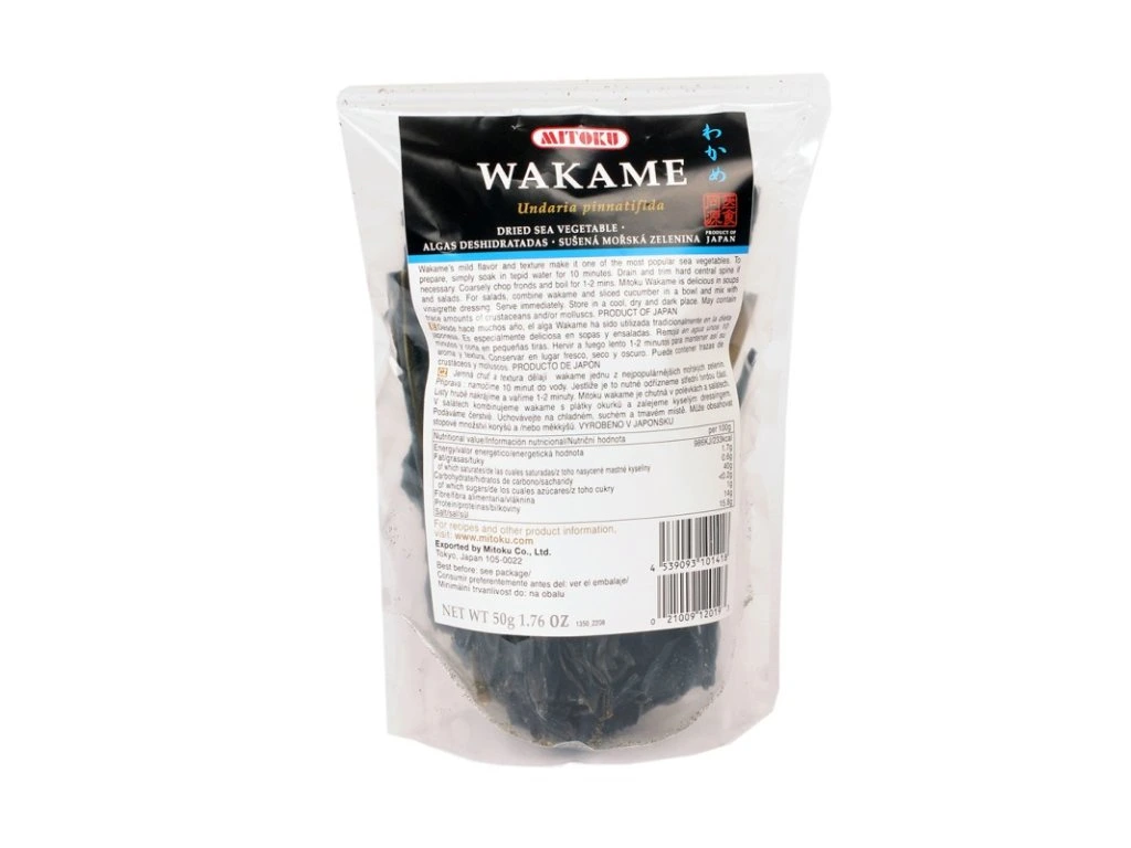 Wakame jsou mořské řasy s vysokým obsahem minerálních látek, vitamínů, bílkovin a vlákniny. Mořské řasy všeobecně jsou zázračná potravina. Obsahují více vitamínů a minerálů než jakákoliv jiná potravina na planetě. Jsou jedním z nejbohatších zdrojů bílkovin a obsahují celé spektrum karotenů, enzymů, aminokyselin, vlákniny a oktakosanolu. Minerály obsažené v mořské zelenině jsou zastoupeny ve stejných poměrech jako minerály, které se nachází v krvi. Jsou bohaté obzvláště na vápník, fosfor, hořčík, železo, jód, zinek a další stopové minerály. Mořské řasy jsou bohaté na vitamíny A,B,C,E a dokonce na vitamín B12. Jsou téměř jediným rostlinným zdrojem vitamínu B12 a obsahují 10 - 20x více minerálů než suchozemské rostliny. Mají protizánětlivé, antimikrobiální a protiplísňové účinky. Doporučená denní dávka jódu je 1g.